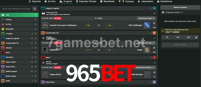 O 965bet oferece uma grande seleção de opções de apostas em e-sports com probabilidades competitivas